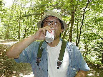 お目当ての区間よりちょつと上から入りましたが、餌釣り士に絶好のポイントが連続する地帯では反応ゼロ、それを過ぎると反応が出始めたのですが、又出方のきついこと。前日仲間のフライマン2人が徹底的に叩いた翌日ではなおさらです。ねもっちやんのフライも4回ほど完全に食っていたのを後ろで見ていたのですが、偏光眼鏡を忘れたので合わせがままならない様子。足で稼ぐしか無く、足早に叩きながら釣り上がりますが、反応のあるなしが極端です。どうにかこうにか2人で ぼ は免れ、真夏日の気温の中40分の林道歩きで車に到着。はぁぁぁぁっ。またまたビールがうまいんだなーこれが。水とたがわず流し込んでしまいます。 |
